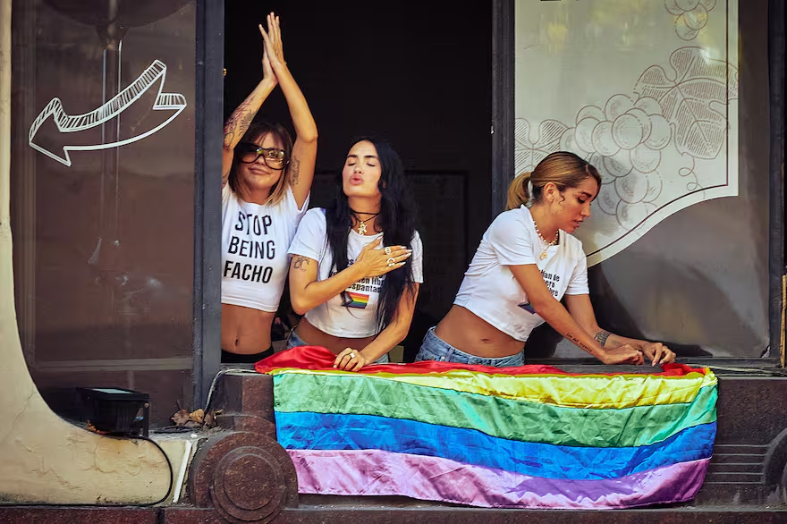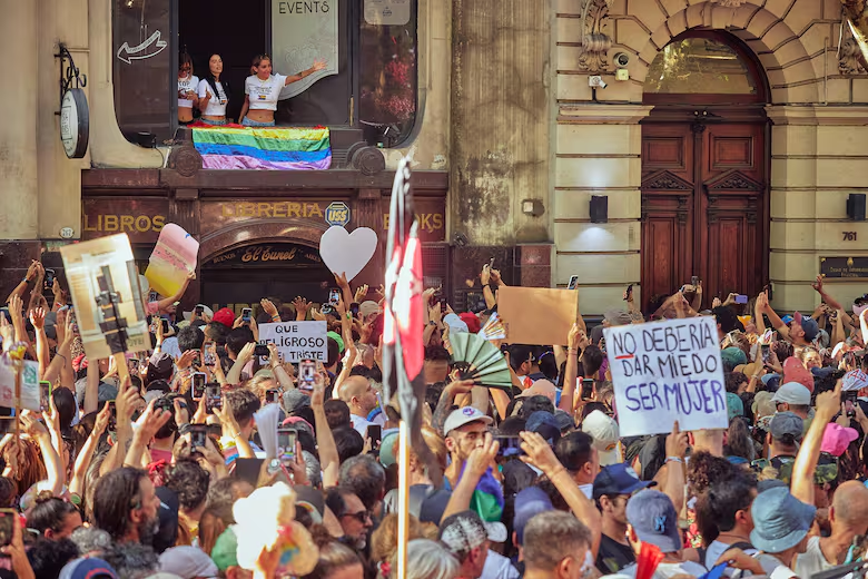 En la movilización, que se organizó en contra de los dichos del Presidente en el foro de Davos, la artista se mostró desde un balcón junto con otras dos cantantes, María Becerra y Taichu, y las tres salieron a saludar a la multitud desde el piso de arriba de la librería El Túnel, ubicada en Av. de Mayo 767. La imagen enseguida copó las redes sociales y decenas de personas se amontonaron para saludarlas. Lali llevaba puesta una remera con la bandera de la comunidad LGTBIQ+, más una frase en señal de acompañamiento a ese colectivo pero también dirigido al Gobierno. “Todos hablan de libertad pero ven a alguien libre y se espantan”, se podía leer.