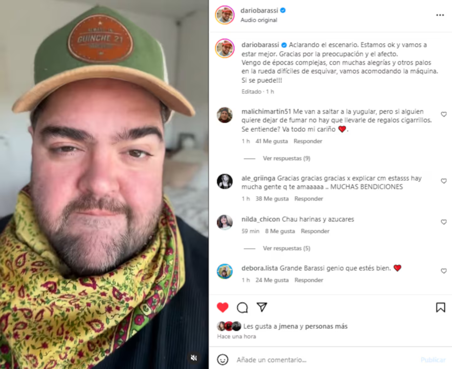 Hace un par de días, a través de sus redes, Barassi les había anticipado a sus seguidores que estaba todo bien en torno a su vida, ya que recibía muchos comentarios de sus seguidores preocupados.