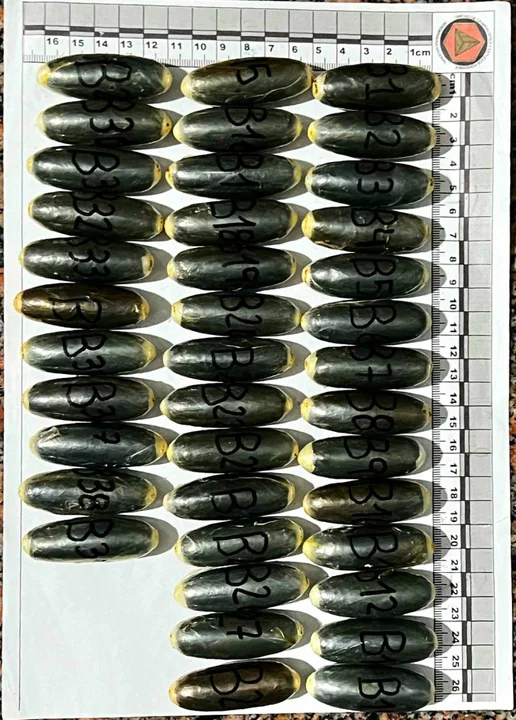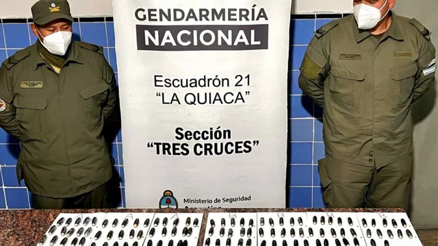 Luego de que ambas personas evacuen las 182 cápsulas ingeridas, los gendarmes realizaron la prueba de campo Narcotest que dio como resultado positivo para cocaína con un peso total de 2 kilos 184 gramos.