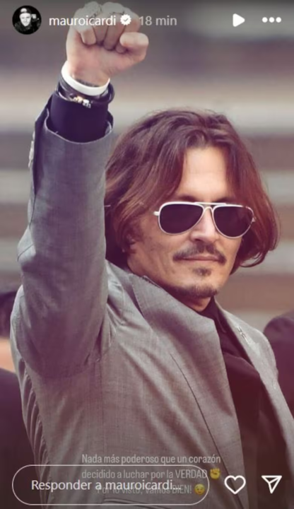 “Nada más poderoso que un corazón decidido a luchar por la verdad”, comenzó un texto, con un emoji de un puño al aire y la imagen de fondo de Jhonny Depp, quien, hace unos años, ganó un juicio contra su exesposa Amber Heard.