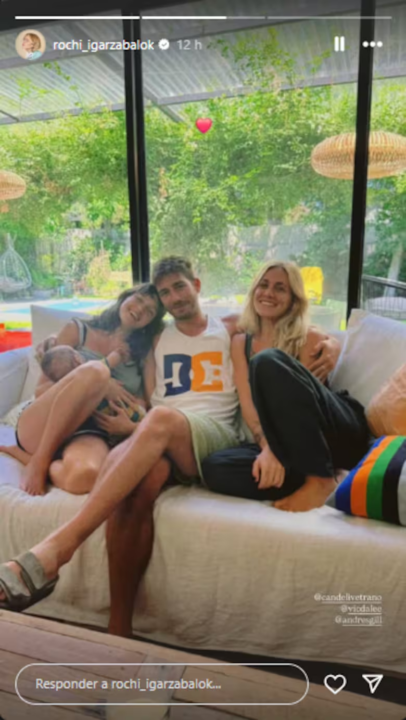 En las últimas horas, Rochi Igarzábal sorprendió a sus seguidores al compartir una tierna postal de la reunión que tuvo con Vico D’Alessandro y Vetrano, aparentemente en la casa de esta última. Los tres posaron abrazados en un sillón con amplias sonrisas. Todo parecería indicar que el encuentro tuvo un especial motivo detrás: conocer a Pino, el hijo recién nacido de Cande y Andrés Gil. El bebé posó para la cámara en brazo de su madre y fue un participante activo de la reunión de los actores.