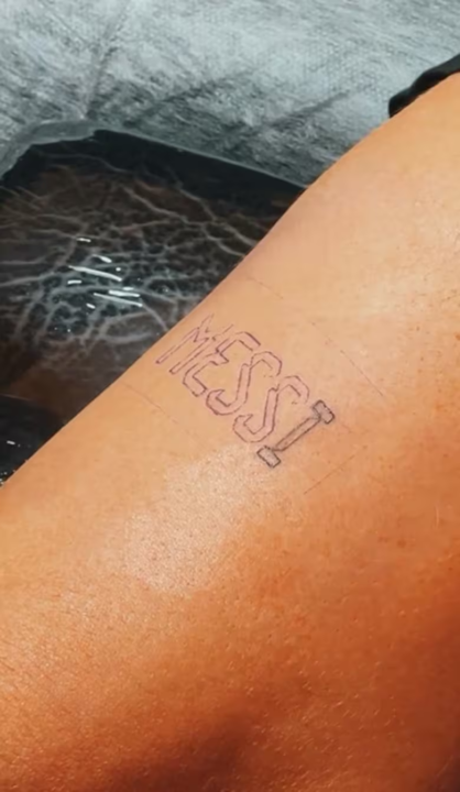 “Esta locura”, escribió en referencia al tema de la T y la M en honor a la selección albiceleste, una vez que publicó el reel en el que enseñó cómo le quedó el tatuaje con el apellido de Lionel Messi. Dicha palabra se la inscribió sobre uno de sus brazos.