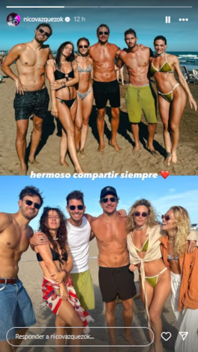 Una vez en Chapadmalal, los cuatro actores fueron a la playa y se encontraron con nada más y nada menos que con Malvina Bedoya Agüero y Nicolás Bauer, es decir Gimena Accardi y Nicolás Vázquez. Como era de esperarse, se sacaron fotos para retratar el reencuentro y fue el exprotagonista de Tootsie quien las subió a sus historias de Instagram. “Hermoso compartir siempre”, escribió el actor, con el emoji de un corazón. Luego Emilia Attias público otra imagen y comentó: “Pintó juntadita sorpresa”.