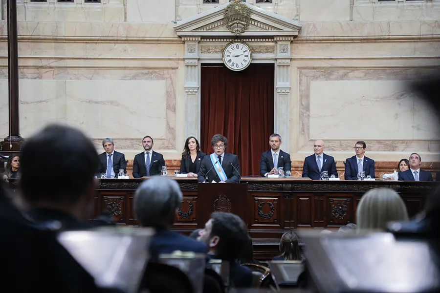 Con críticas directas al kirchnerismo, algunos tiros por elevación a la gestión de Mauricio Macri y un llamamiento a los gobernadores, Milei aseguró que el próximo año se acentuará la reducción del gasto público y remarcó que el proyecto, que deberán tratar ambas cámaras del Congreso, “va a cambiar para siempre la historia de nuestro país, para volver a ser la Argentina grande que fuimos”. “Venimos a poner un cepo al Estado. Este proyecto que presentamos viene a blindar el equilibrio a fiscal sin importar el escenario económico. Este blindaje abre una nueva página en nuestra historia. Argentina será solvente”, dijo el mandatario en su discurso.
