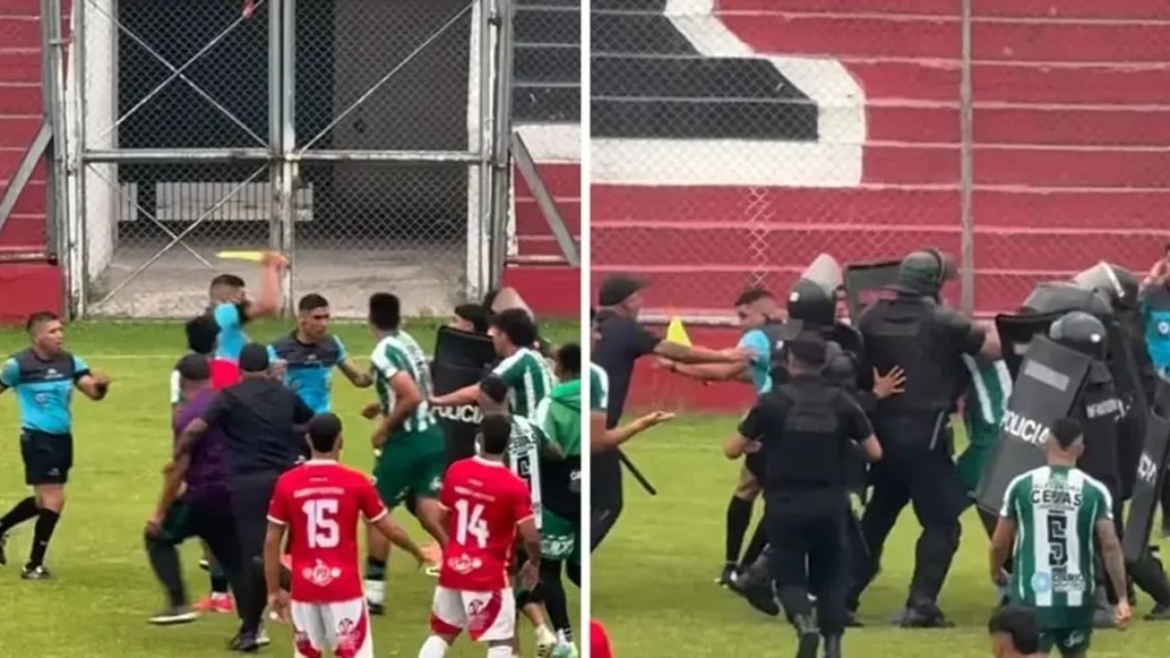 En medio del caos, los árbitros intentaron defenderse de las agresiones con golpes de puño y hasta con un banderín, mientras la policía intervenía para controlar la situación. Las imágenes se viralizaron rápidamente y reavivaron las críticas sobre la falta de control en los torneos locales.