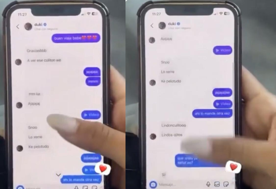 Pero la polémica no llegó solo hasta ahí, sino que días después, al parecer, la joven logró convencer a su amiga de que publicara la conversación. Por eso, desde su propio celular grabaron la pantalla del otro teléfono mientras entraban al perfil de Duki en Instagram y luego a su conversación.
