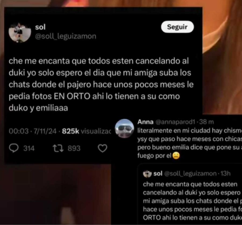 Según contó en su perfil, el que trapero le habría pedido fotos íntimas a alguien de su entorno. “Che, me encanta que todos estén cancelando al Duki. Yo solo espero el día que mi amiga suba los chats donde el paj* hace unos pocos meses le pedía fotos en or”, escribió la usuaria de la red social en una publicación.