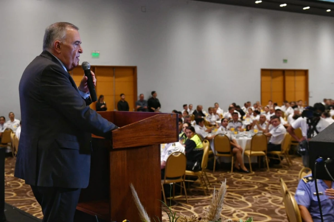 El gobernador, Osvaldo Jaldo, participó esta mañana de un desayuno de camaradería al conmemorarse los 203 años de la Policía de Tucumán. El mandatario resaltó el trabajo y el compromiso de los efectivos de seguridad. Jaldo estuvo acompañado por parte de su Gabinete, la intendenta Rossana Chahla, el presidente de la comisión de Seguridad de la Legislatura, Carlos Najar, y altos mandos de seguridad, entre otros.