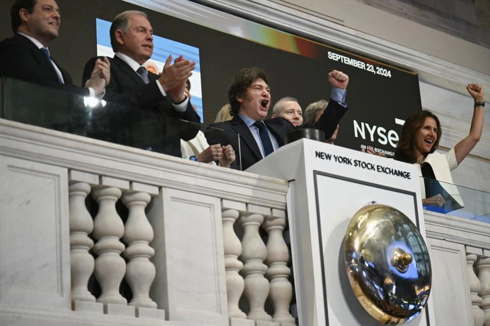 NUEVA YORK, Estados Unidos.- Un eufórico Javier Milei tocó la campana que da inicio a la jornada en la Bolsa de Valores Nueva York, una tradicional ceremonia destinada a personalidades políticas y del mundo de los negocios. En Wall Street, frente a 200 personas del mundo de las finanzas que lo recibieron con gritos y aplausos. reiteró su compromiso “inquebrantable” contra el déficit fiscal y dijo que es protagonista de la “reforma estructural más grande de la historia” en pos de convertir a Argentina “en el país más libre del mundo”.