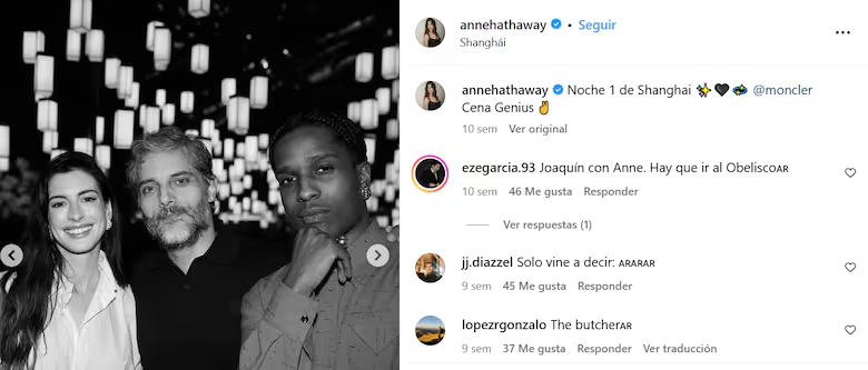 “Noche 1 de Shanghái @moncler Cena Genius”, fueron las palabras con las que Anne describió el encuentro desde su Instagram, publicación que realizó el 19 de octubre. “Chequeado que casi 3.000 de los comentarios son argentinos”; “Acá venimos todos los argentinos a comentar” y “Joaquín con Anne, se festeja en el Obelisco”, fueron solo algunos de los comentarios que destacaron.