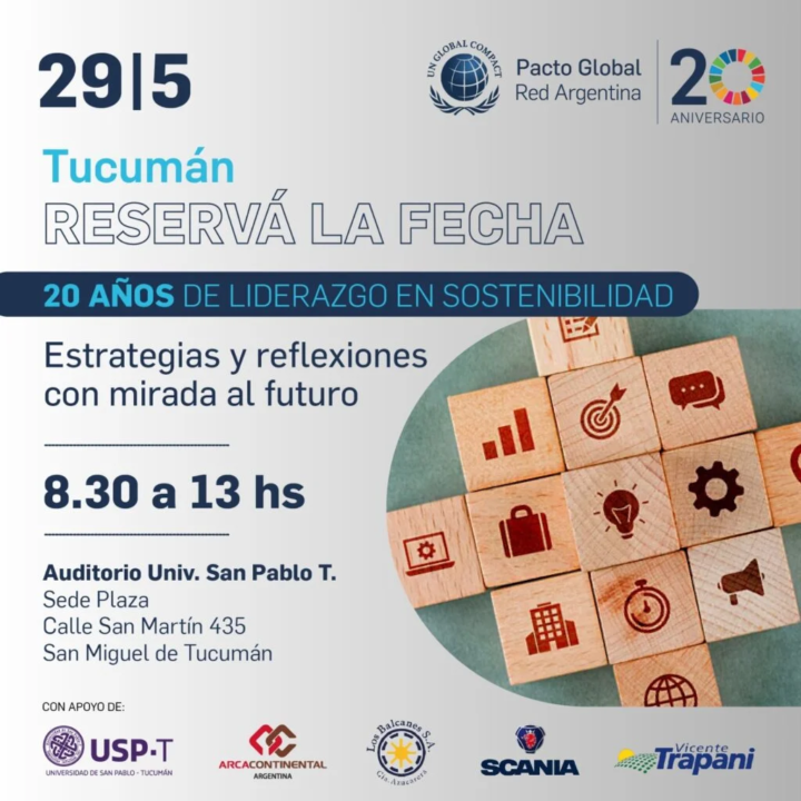 El próximo miércoles 29 de mayo de 8:30 a 13 h en el Auditorio de la Universidad de San Pablo T, ubicado en San Martín 435 se realizará un evento que reunirá a líderes empresariales, académicos y representantes de la sociedad civil para reflexionar sobre el impacto de Pacto Global Argentina en la región. Además, su objetivo es trazar el camino hacia un futuro sostenible.