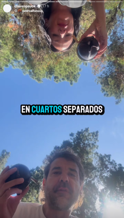 Sin embargo, Pedro se mostró negado a tener que estar en camas separadas con Paula. Por eso, analizó la frase “cada mañana el sol nos dio en la cara al despertar” de “Me va a extrañar” de Ricardo Montaner. “¿Ves? Están los dos juntos en un cuarto?”, expresó en el final del video que compartieron.