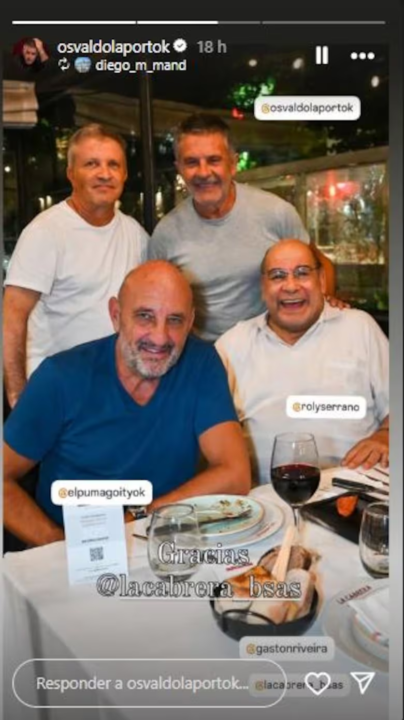 “Gracias, Rolito, por volver” escribió Laport en sus redes sociales junto a una divertida postal del grupo de amigos celebrando la recuperación de Serrano. “Fue conmovedor, éramos como cuatro niños”, reveló el reconocido actor uruguayo en diálogo con La Nación y dio detalles de la emotiva velada.