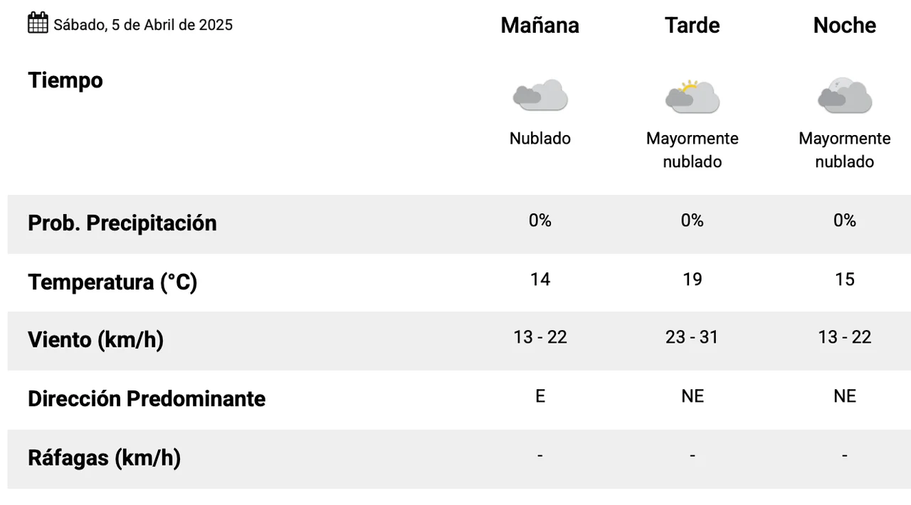 El viento soplará del sector sur con intensidad moderada, lo que mantendrá una sensación térmica fresca durante gran parte del día, ideal para actividades al aire libre.